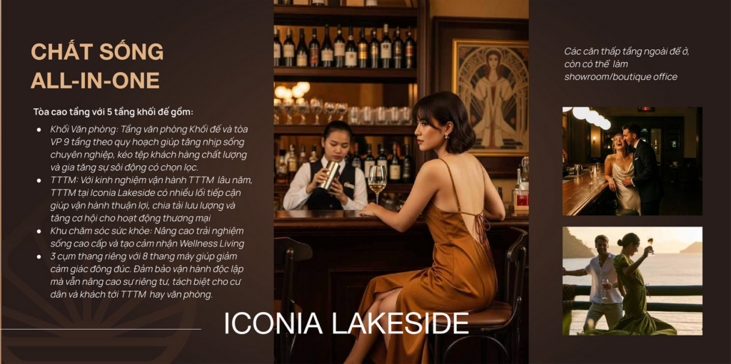 Cư dân sinh sống tại ICONIA LAKESIDE còn sở hữu hệ thống dịch vụ tiện ích đẳng cấp 5 sao, mang đến không gian sống thư thái, giảm mệt mỏi, căng thẳng sau mỗi ngày làm việc với hệ thống cảnh quan cây xanh trong lành, hệ thống bể bơi, gym, Spa đẳng cấp,…